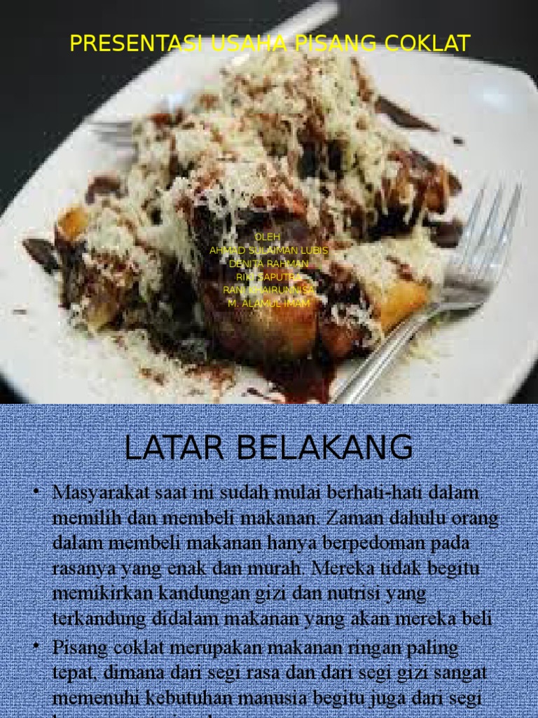 Laporan Observasi Kewirausahaan Usaha Pembuatan Pisang Coklat Kampus Pdf Free Download from docplayer.info Sehingga pemasaran akan semakin mudah dan meluas. Pisang coklat akan menjadi usaha bisnis kecil yang menguntungkan sejak dulu dan mulai berkembang dengan berbagai rasa. Cek resep cara membuat pisang coklat lumer dan crispy. Ikuti resep es pisang cokelat beku dari buku resep dessert pilihan untuk bisnis boga oleh arif budi prayitno (tim ide masak) terbitan pt gramedia pustaka utama. Penasaran dengan cara membuat pisang coklat? Cara membuat pisang goreng crispy coklat keju : Cara membuat pisang goreng coklat keju: Ada banyak pilihan iklan bisnis gratis secara online yang memungkinkan bisnis untuk bisa lebih berkembang tanpa harus mengkhawatirkan masalah usaha kecil hingga menengah (umkm) dan jenis bisnis lain biasanya beroperasi dengan anggaran pemasaran terbatas sehingga tidak memiliki.